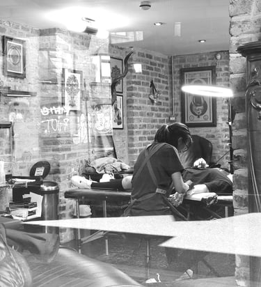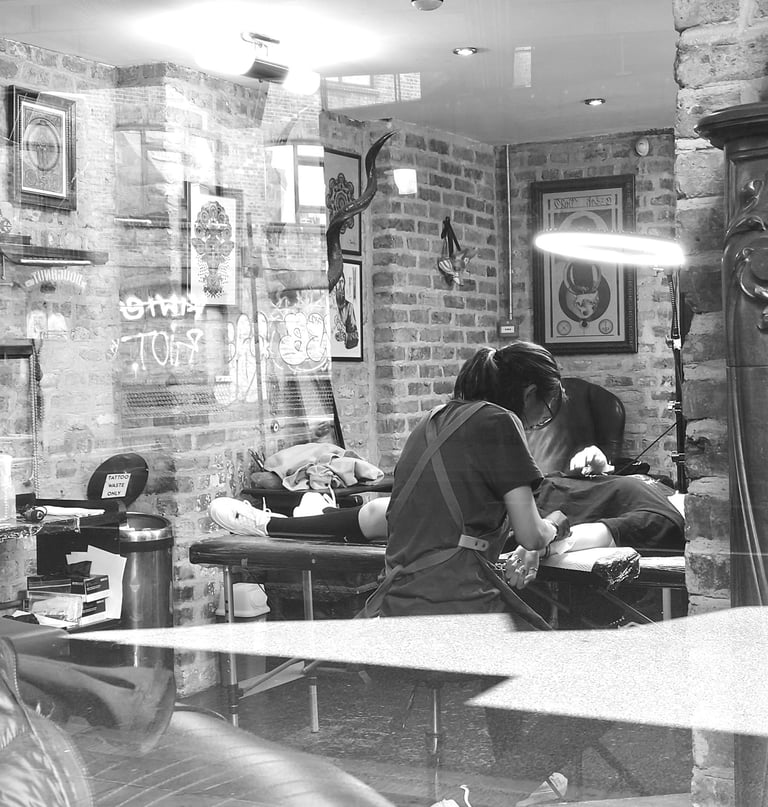 That said, I’m still very much a millennial at heart who finds joy in sarcasm, irony, and pop culture. This often comes through in my tattoo work, where song lyrics, literature, and even pieces of my own thoughts spill out in a loose, wabi-sabi handwritten style. Through it, I explore vulnerability, intimate and personal themes that others might recognize, relate to, or draw a little strength from.